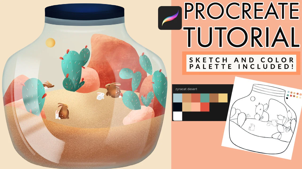 Desert Bunny Terrarium | Detailed Process Step by Step Procreate Tutorial